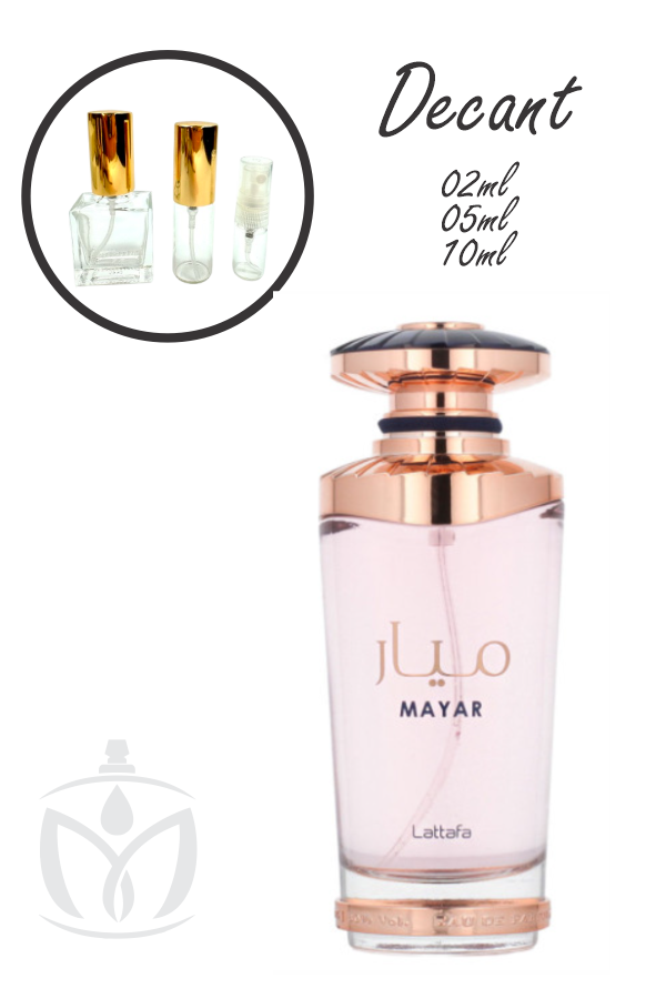 Agora disponível em nossos decants exclusivos de 2ml, 5ml e 10ml, para que você possa levar a elegância de Mayar sempre com você, a qualquer hora e em qualquer lugar!