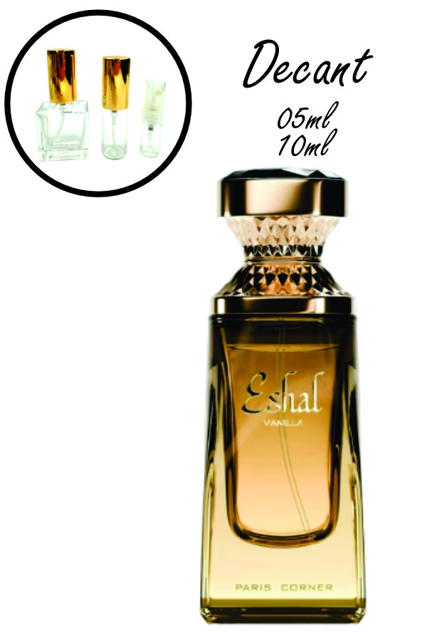 Eshal Vanilla se abre com notas açucaradas e doces, trazendo uma sensação deliciosa e acolhedora logo nas primeiras borrifadas. No coração, o jasmim e a rosa revelam uma feminilidade elegante e equilibrada, suavizando a doçura com um toque floral sofisticado. No fundo, a baunilha cremosa se mistura com caramelo e almíscar, criando um rastro quente, macio e extremamente viciante — uma fragrância doce, envolvente e refinada. (Fragrantica)