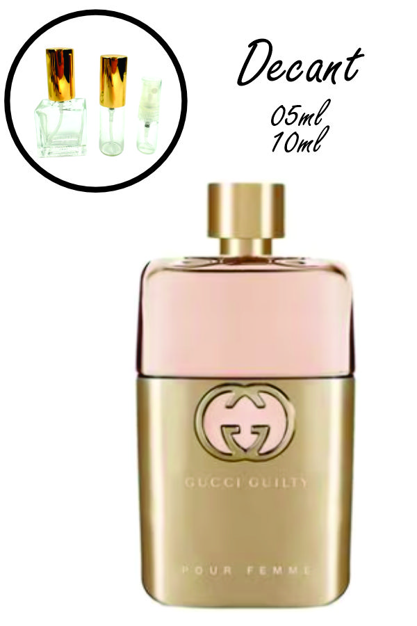 Descubra o charme envolvente de Gucci Guilty Pour Femme, uma fragrância sofisticada, feminina e cheia de personalidade. Moderna e sedutora na medida certa, ela traduz a mulher confiante que gosta de deixar sua marca com elegância. Agora disponÃvel em nossos decants exclusivos de 2ml, 5ml e 10ml — perfeitos para te acompanhar em todos os momentos.