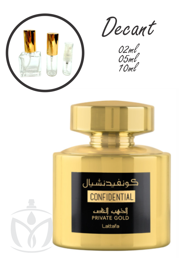 ✨🏆 Sinta o brilho e a exclusividade de Confidential Private Gold de Lattafa. Peça já o seu decant e envolva-se nessa fragrância luxuosa! 🏆✨